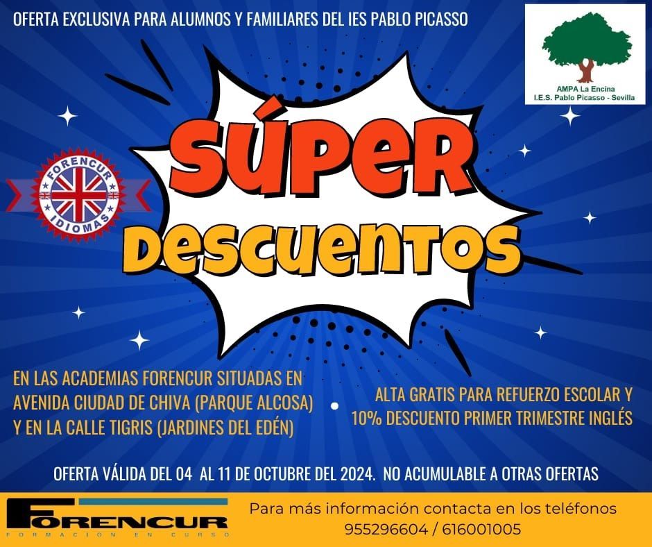 GRATUITO PARA LOS SOCIOS ( ALUMNOS Y PADRES ) DEL AMPA LA ENCINA - I.E.S PABLO PICASSO Y AVERROES