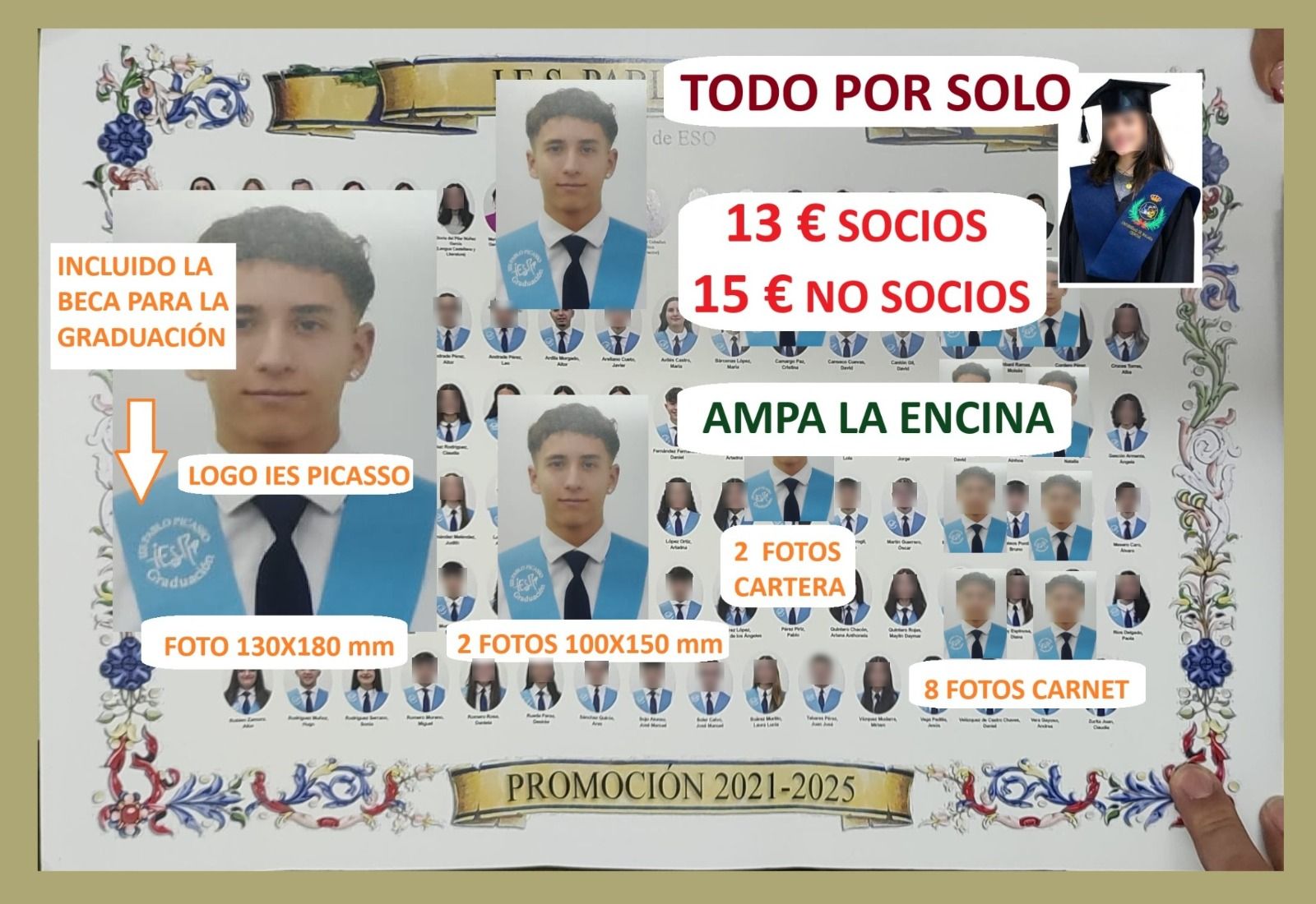 NO SOCIOS Y AJENOS AL CENTRO IES PICASSO - 9 € + Regalo 2 llaveros a elegir -